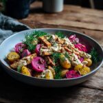Inspired by Korean culinary art, this modern bibimbap offers a fresh take on tradition, combining vibrant vegetables, crispy textures, and a flavorful ssamjang sauce. Each...