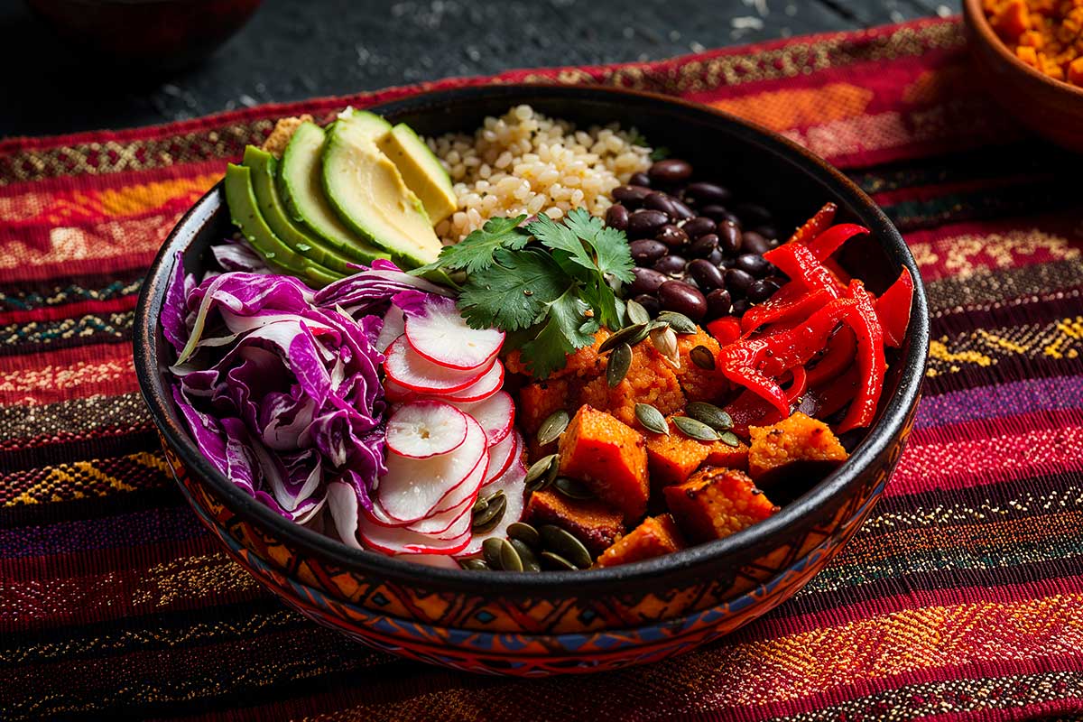 Easy to adapt with seasonal produce, this bowl is perfect for a nourishing lunch or a light yet satisfying dinner. It combines simplicity, nutritional balance, and rich flavours in a dish that evokes the warmth of the sun and the cultural diversity of pre-Columbian heritage.