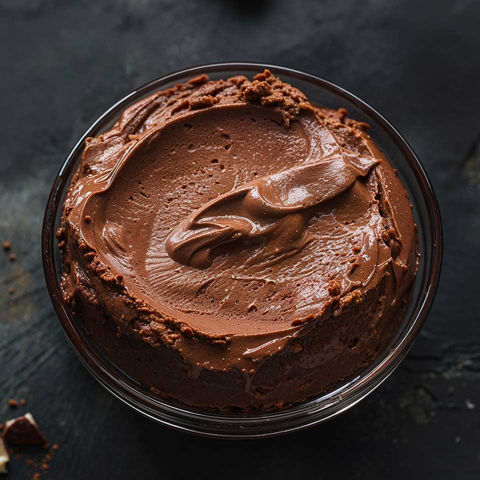 When you add the chocolate to the aquafaba, your mousse will be airy and light. This is a classic technique: leave the chocolate to cool down briefly before pouring it onto the aquafaba, that’s still in the food processor (or a bowl if you’re using a regular whisk). You can use the food processor during an extra 10 seconds or so, or you can gently work it in with a spatula, in order to keep it airy.