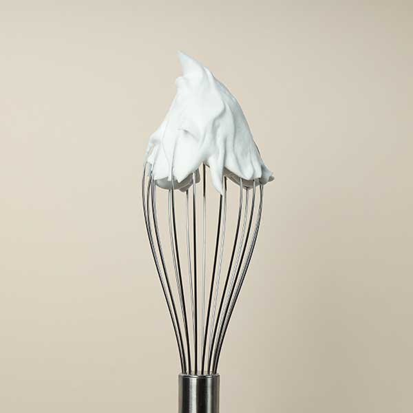 - Add the rest of the aquafaba, in 3 or 4 times and make sure to scrape the bottom and sides of your bowl. If your aquafaba loses some of its “air”, don’t worry, it’s perfectly normal.