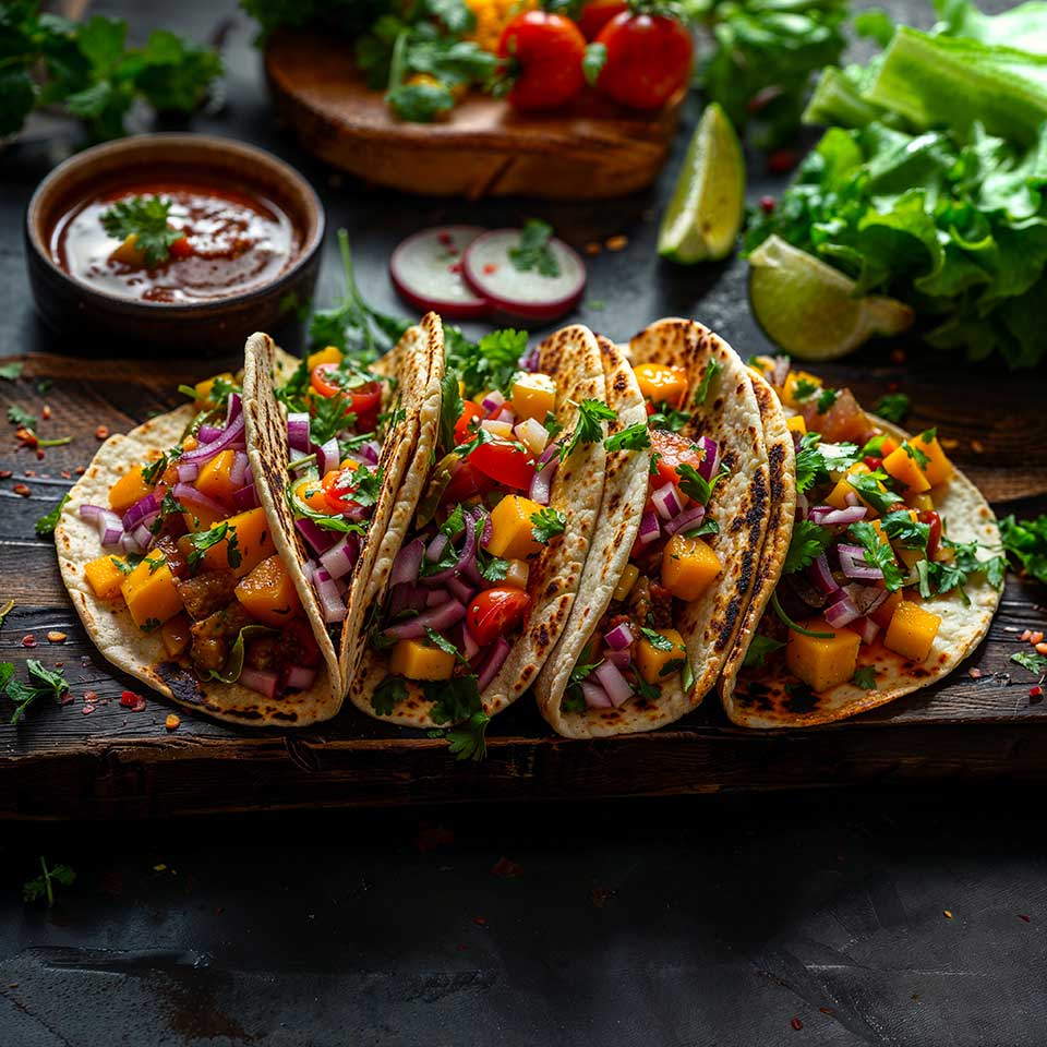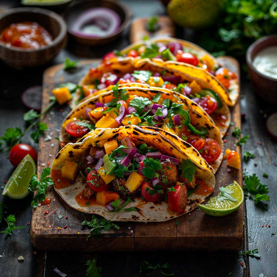 Tacos are a true symbol of Mexican cuisine, appreciated for their simplicity and versatility. This vegan version with mango and avocado offers an explosion of fresh and fruity flavors, perfect for a light and tasty meal. Easy to prepare, these tacos are ideal for a quick lunch, a dinner with friends, or a convivial taco night.