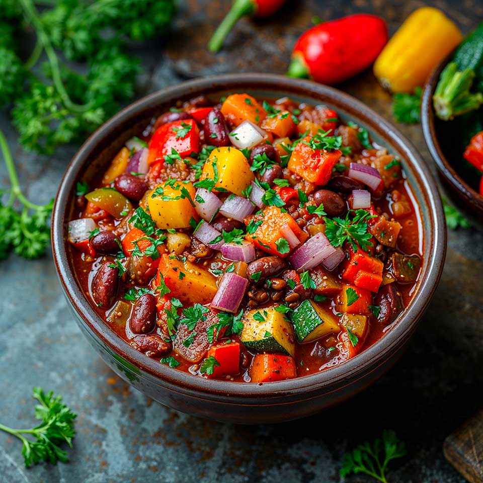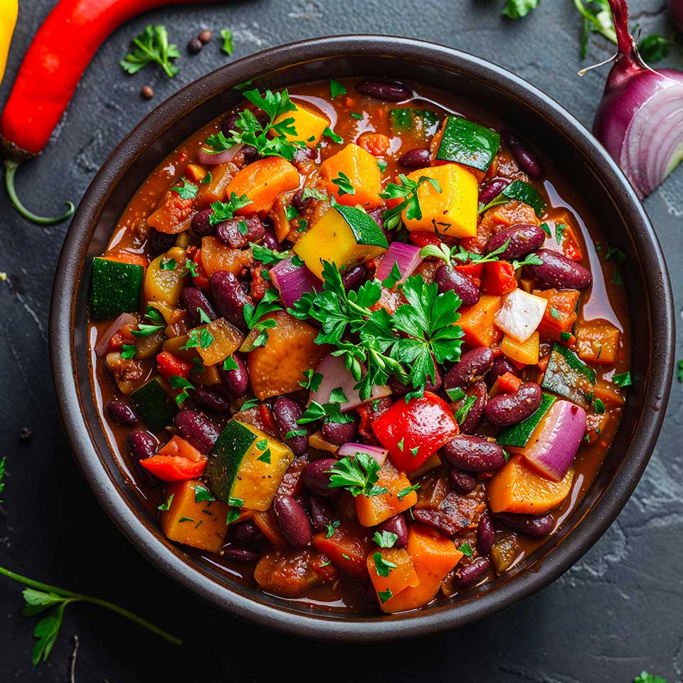 Discover our Red Bean and Roasted Vegetable Stew, a celebration of global flavors. Merging key ingredients from diverse culinary traditions, this recipe is a true homage to international cuisine. Red beans, a staple in Latin American, Caribbean, African, and Asian cuisines, are paired here with roasted vegetables, a cherished Mediterranean technique to enhance their flavor. The chosen spices, such as cumin, smoked paprika, and cayenne pepper, bring warm and profound notes reminiscent of Indian, Middle Eastern, and North African kitchens.