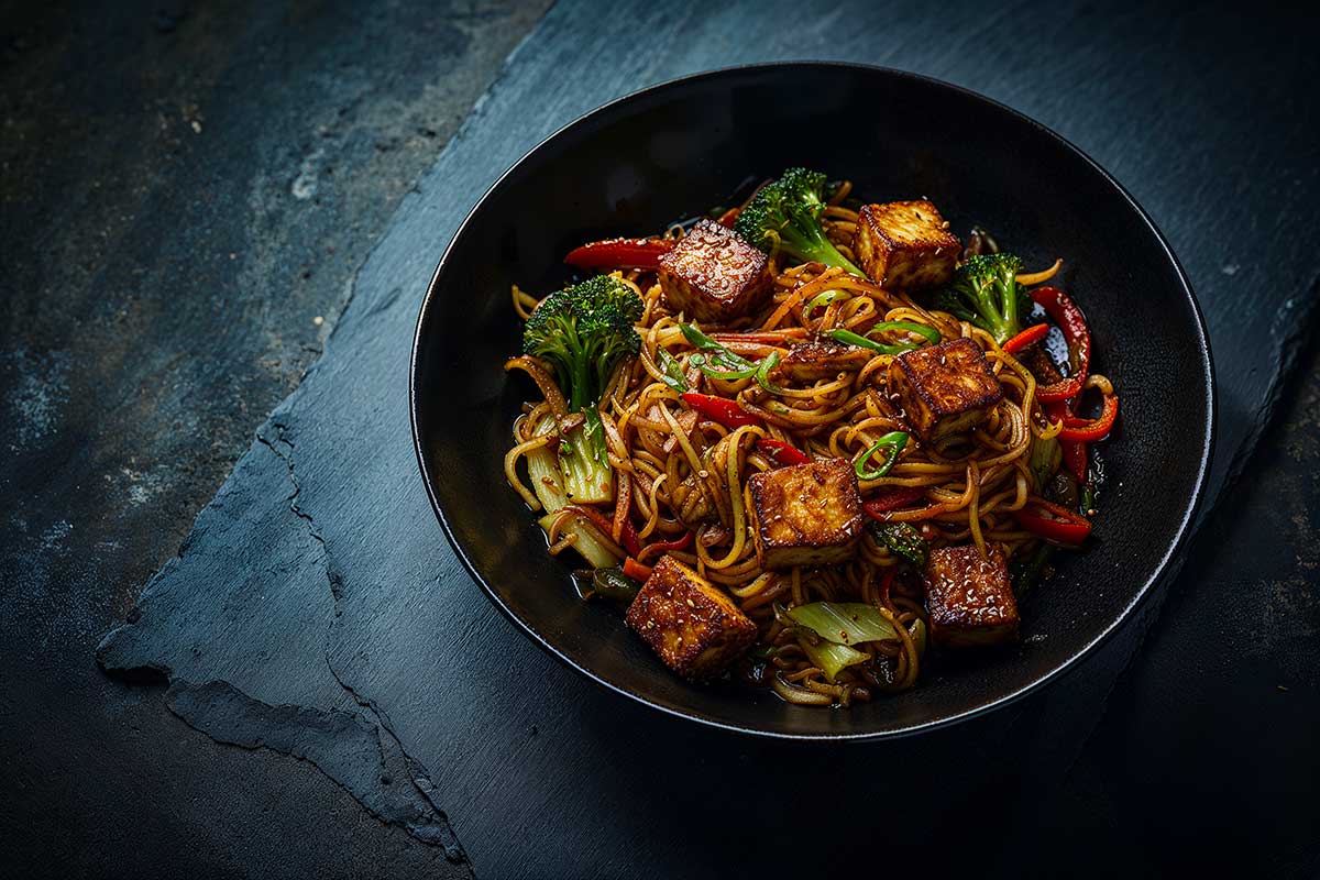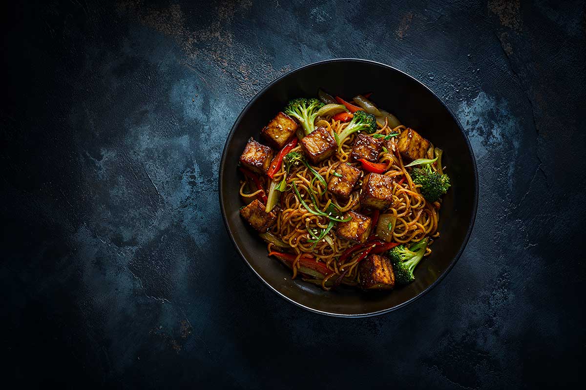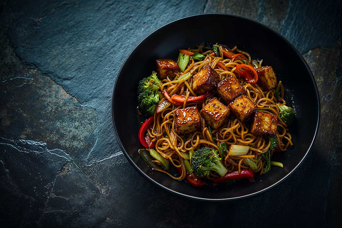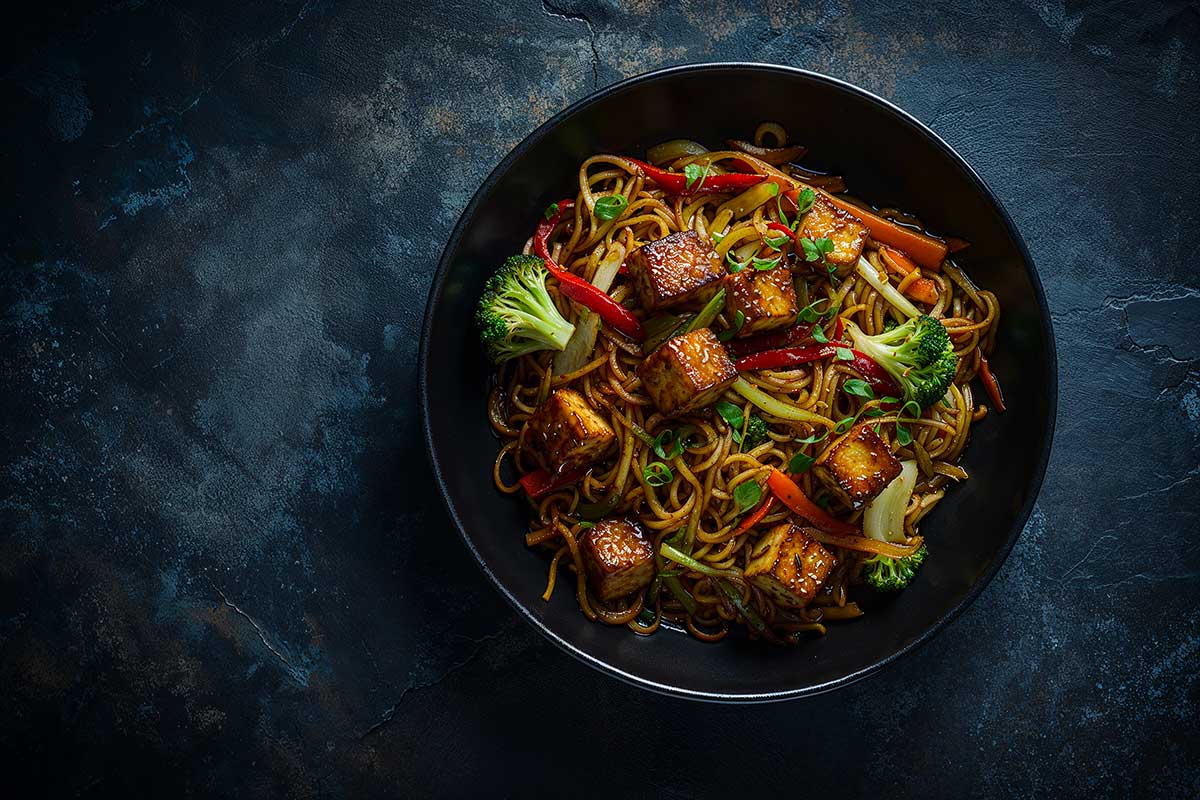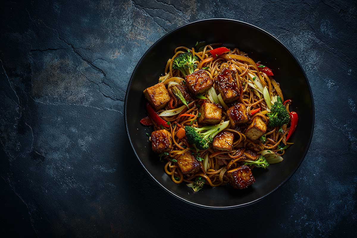 Stir-Fried Noodles with Crispy Tofu & Teriyaki Sauce