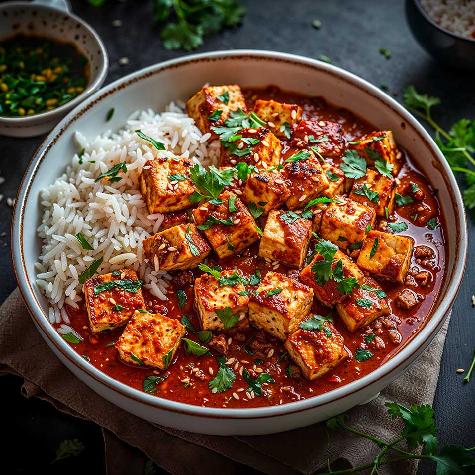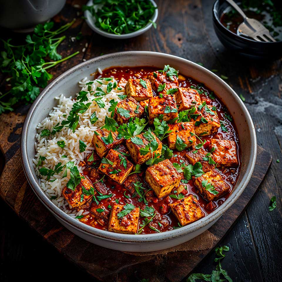 Tandoori Tofu Tikka Masala is a deliciously spicy and aromatic dish that combines the best of Indian cuisine in a vegan version. Featuring marinated and grilled tofu, and a creamy sauce made from coconut milk and tomatoes, this dish promises to delight everyone’s taste buds.
