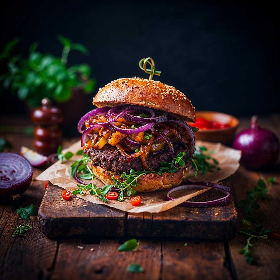 Ces burgers vegan combinent la texture des haricots noirs, le goût sucré des oignons caramélisés et les saveurs des épices pour créer un repas délicieux et nutritif. N'hésitez pas à personnaliser les garnitures selon vos goûts!