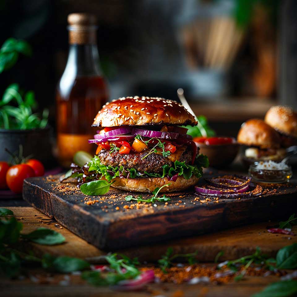 Even if the burger isn’t a particularly Japanese specialty, the Testuo Burger is a tribute to the land of the rising sun. The main ingredient in this dish is, after all, the Shiitake mushroom, as well as a few other key ingredients from Japanese cuisine: mirin and panko. You won’t even need to go hunt down an Asian shop; all of these are available in most supermarkets.