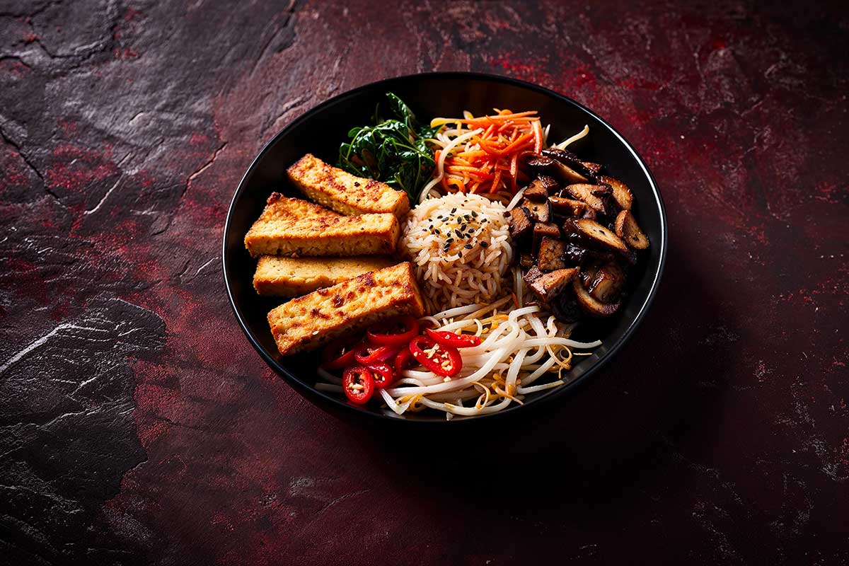 Chaque ingrédient a été sélectionné pour sa couleur, sa texture et sa fonction, afin de composer un bol complet, nourrissant et vibrant. Les légumes sont cuits séparément pour préserver leur caractère. Le tofu, doré à la poêle, apporte à la fois chaleur et douceur. Et la sauce au gochujang vient lier le tout d’une touche épicée et fermentée, typique de la cuisine coréenne.