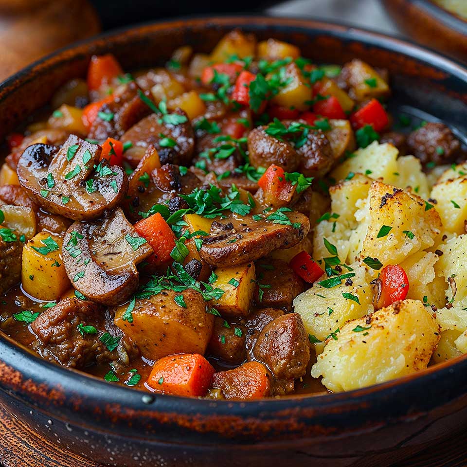 Bourguignon de Légumes et Pommes de Terre au Four