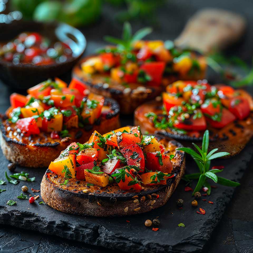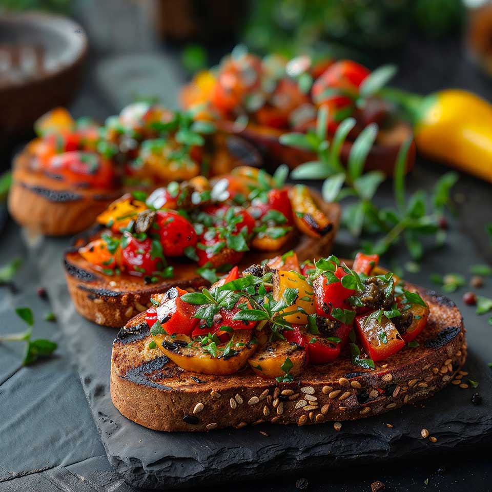 Bruschettas aux Poivrons Grillés et Tapenade d'Olives Noires