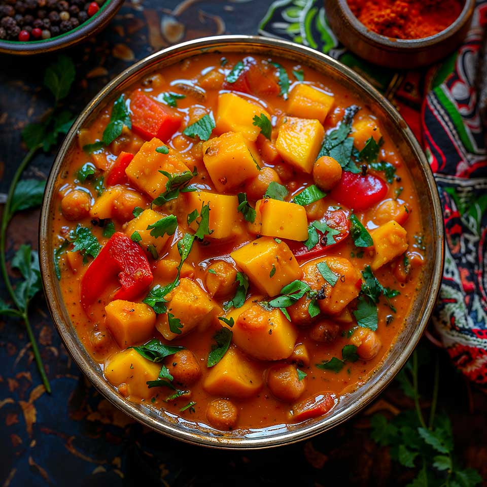 Le Curry de Mangue Épicé est un plat coloré et savoureux qui marie la douceur des mangues mûres avec la chaleur des épices indiennes. Ce curry végétalien, riche en couleurs et en textures, est parfait pour apporter une touche exotique à votre table. Facile à préparer, cette recette va tout simplement impressionner vos invités!