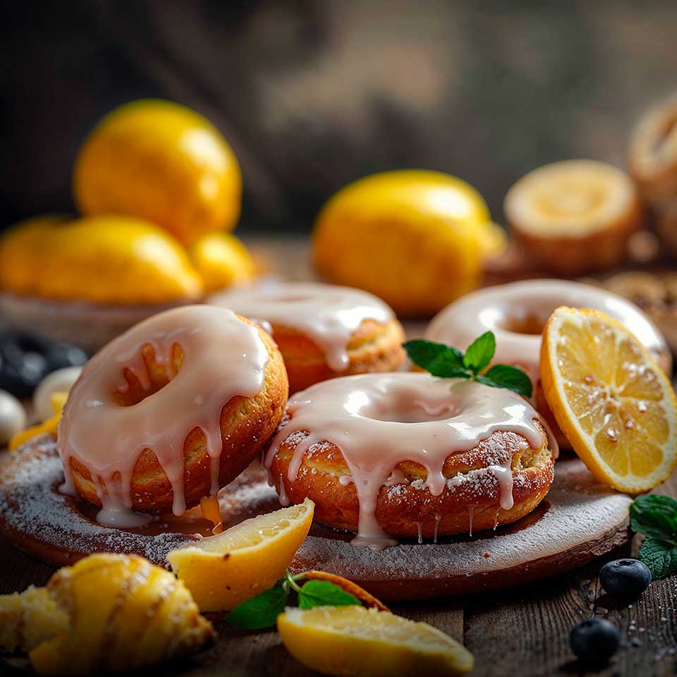 - Finition: une fois les donuts refroidis, trempez le dessus dans le glaçage au citron et au gingembre.