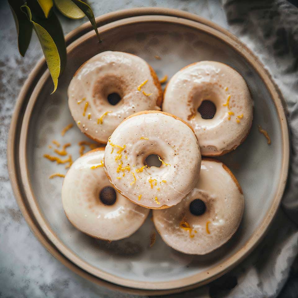 Faciles à préparer et cuits au four, ces donuts sont une alternative plus légère aux donuts traditionnels frits, tout en conservant une texture moelleuse et gourmande. L’huile de coco leur apporte une richesse subtile, tandis que le zeste d’orange ajoute une note de fraîcheur vivifiante. Le glaçage à la fleur d’oranger, délicatement sucré, complète parfaitement ces petites merveilles.