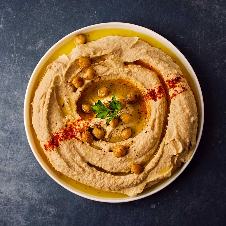 Le houmous est une préparation culinaire du Proche-Orient réalisée à base de pois chiches; en arabe, le terme “houmous” signifie d’ailleurs “pois chiches”. L’origine de la recette est revendiquée par plusieurs pays tels que la Turquie, le Liban, l’Égypte ou la Syrie, mais les premières traces de ce plat remontent au 8ème siècle avant J.-C.