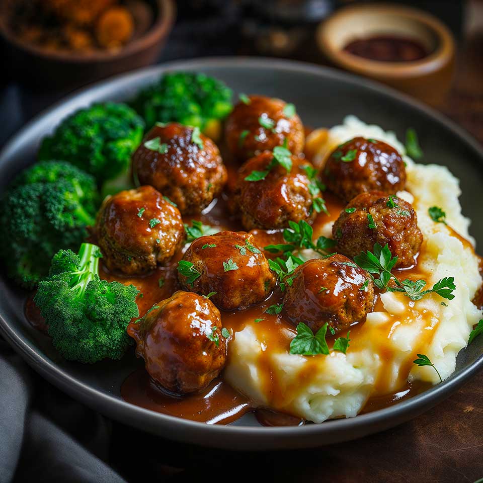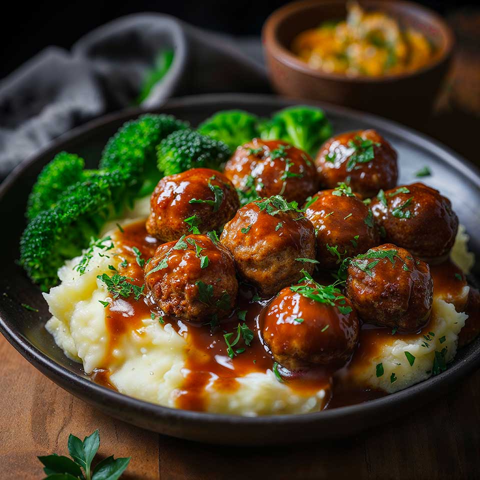 Les boulettes sont élaborées à partir de protéines de soja texturées, finement assaisonnées, et servies avec une sauce riche et crémeuse. Pour une expérience culinaire des plus complètes, Maison Marmite vous recommande d’accompagner ce plat de notre délicieuse Purée de Pommes de Terre et Panais à la Scandinave. Vous trouverez la recette de cette purée parfaite pour compléter votre festin nordique sur cette page.