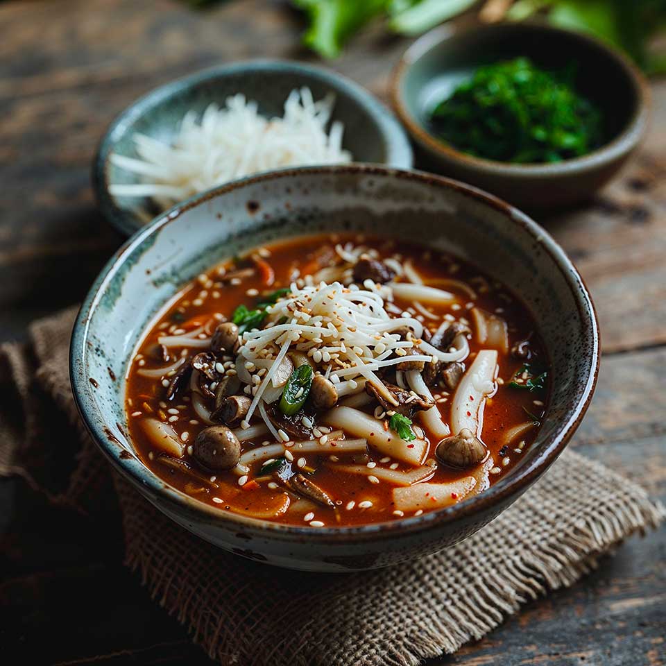 Encore méconnue en occident, la cuisine coréenne est pourtant pleine de saveurs grâce à une très grande diversité de plats et d’épices. Voici une soupe traditionnelle qui fait la part belle aux champignons et à l’un des épices les plus typiques de cette cuisine asiatique: le Gochugaru.