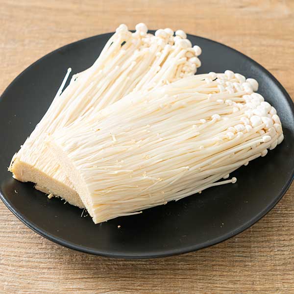 L’enoki et le shimeji sont des cousins un peu surprenants visuellement parlant car ils s’achètent en motte. Vous pouvez utiliser l’un ou l’autre. Ou les deux. Et si vous n’en trouvez pas, vous pouvez les remplacer par des pleurotes.