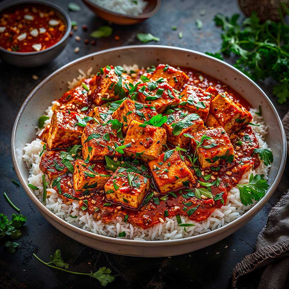 Le Tandoori Tofu Tikka Masala est un plat délicieusement épicé et parfumé qui combine le meilleur de la cuisine indienne dans une version végane. Avec du tofu mariné et grillé, et une sauce crémeuse à base de lait de coco et de tomates, ce plat promet de ravir les papilles de chacun.