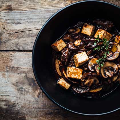- Faites chauffer un peu d'huile dans une grande poêle ou une casserole. Versez la marinade et les cubes de tofu, et faites-les revenir jusqu'à ce qu'ils soient dorés. Réservez-les.