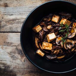 Le tofu braisé aux champignons et poivre noir est une recette inspirée des plats mijotés que l’on retrouve dans plusieurs cuisines d’Asie de l’Est, en particulier dans les traditions chinoise et taïwanaise. Elle met à l’honneur les saveurs riches et terreuses des champignons, associées à une sauce parfumée au soja, au vinaigre et au poivre. Le braisage, c’est-à-dire une cuisson lente dans un liquide aromatique, permet de développer une profondeur de goût remarquable avec peu d’ingrédients.