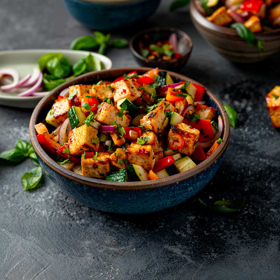 Facile et rapide à préparer, cette recette est idéale pour un déjeuner en semaine ou un dîner sans prise de tête. Le tofu est cuit jusqu’à être croustillant, tandis que les légumes restent croquants, conservant ainsi toutes leurs saveurs et leurs bienfaits nutritionnels. C’est le type de plat qui vous fait sentir bien après l’avoir mangé, tant il est léger et nourrissant.