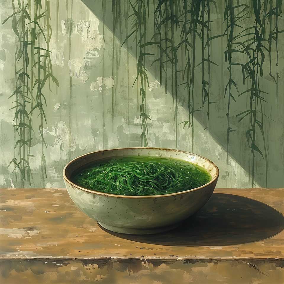 En cuisine, le wakamé est apprécié pour sa saveur umami subtile et sa texture unique. Utilisé couramment dans les soupes, telles que la traditionnelle soupe miso, il s’invite aussi dans des salades rafraîchissantes, souvent associé à des concombres et une vinaigrette au sésame. Sa texture, qui devient douce et légèrement croquante une fois réhydratée, complète parfaitement les plats de tofu, les nouilles et même les sushis. Il est également utilisé comme garniture délicate dans les bols de riz et les poke bowls, ajoutant une dimension de saveur et de texture à ces plats populaires.